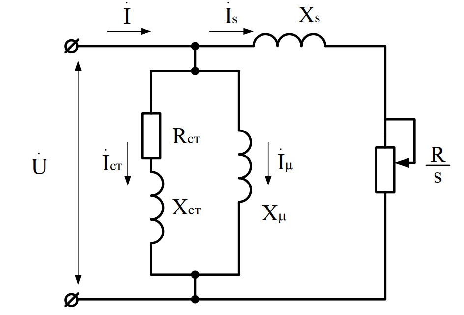 Рисунок 1 –Схема замещения комплексного узла нагрузки с АД, представленного упрощенной Г-образной схемой для анализа статической устойчивости