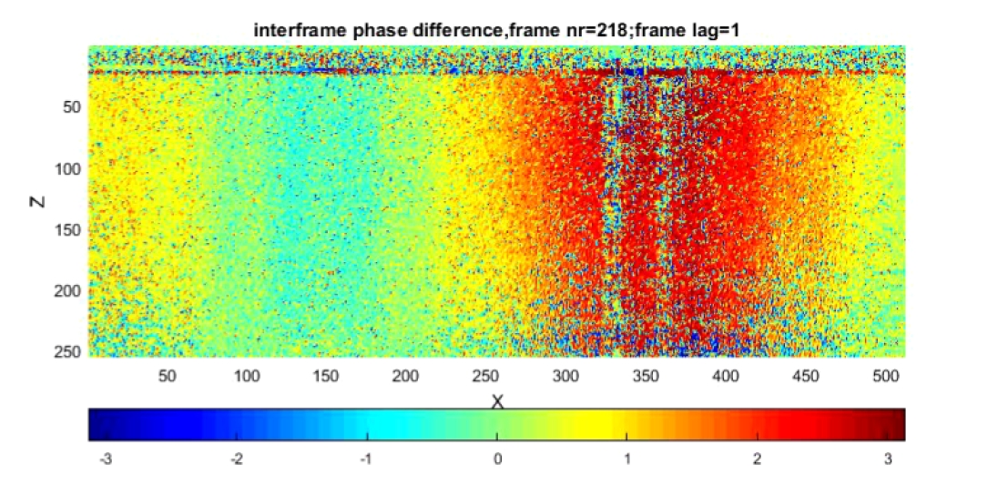 Рисунок 2. «Засветы» на картине межкадровой разности фаз при исследовании ПААГ с магнетитом