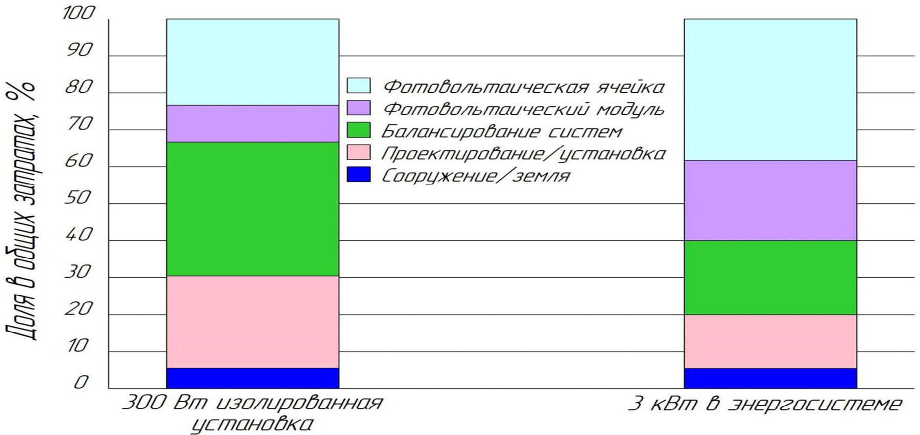 Рисунок 2. Структура инвестиционных затрат для солнечных фотовольтаических систем