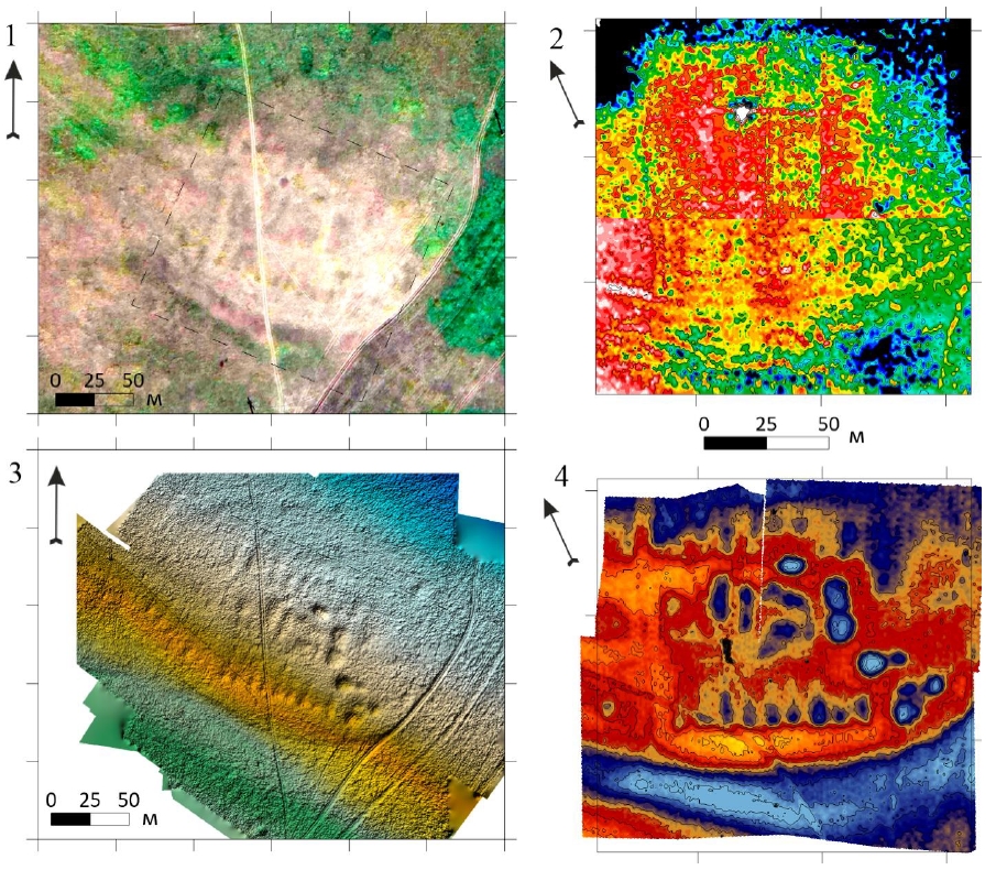 Main results of research: the joint use of various remote sensing methods made it possible to identify several construction horizons of different times at archaeological sites and to clarify the shape and contours of settlements.