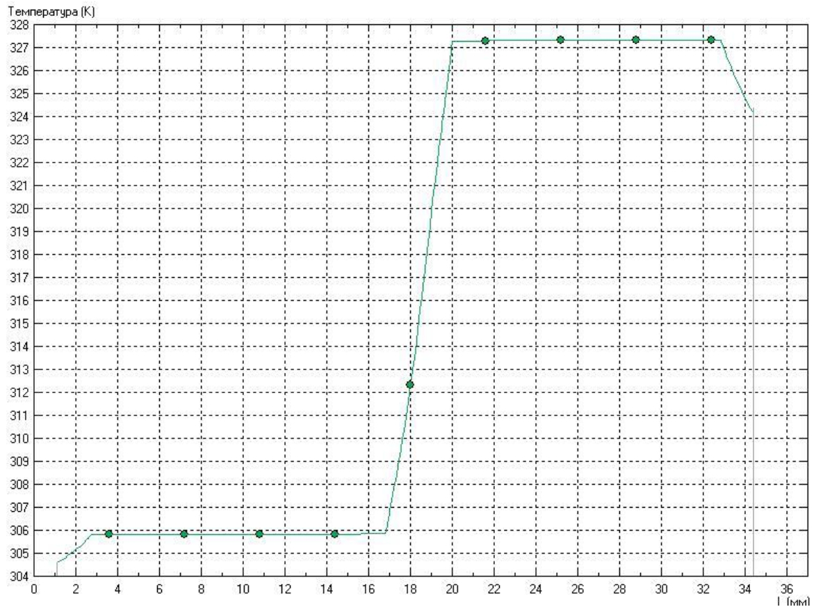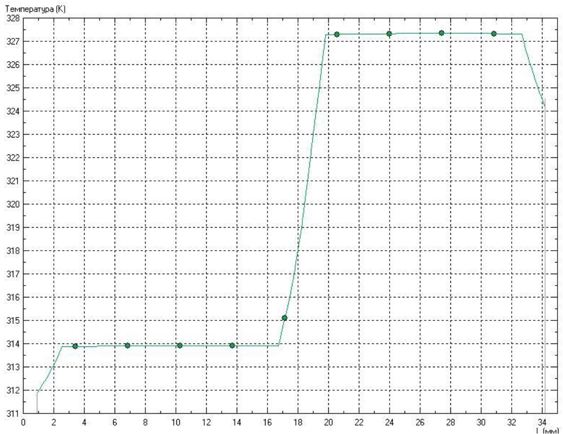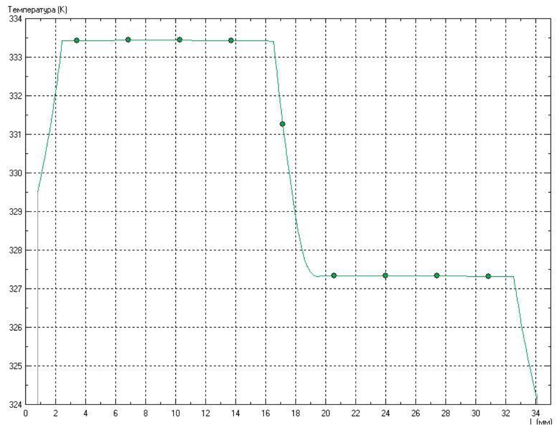 Рисунок 5 – Градиент температуры по сечению нулевой жилы