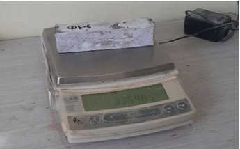 Рис. 3. Взвешивание образца-призмы геополимеров, подготовленного к испытанию на растяжение при изгибе