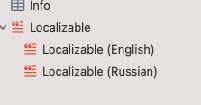 Сделав это и заглянув в проект, мы увидим, что файл локализации исчез со старого места. Однако появятся папки, каждая из которых будет иметь имя формата {lang_code}.lproj. Открыв эти папки, мы обнаружим в них новую копию файла Localizable.strings, а в проекте увидим этот файл в виде раскрытой группы: