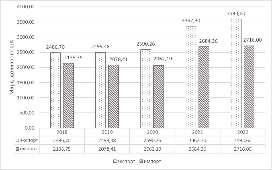 Рис. 2. Объем экспорта/импорта Китайской Народной Республики (2018-2022)4