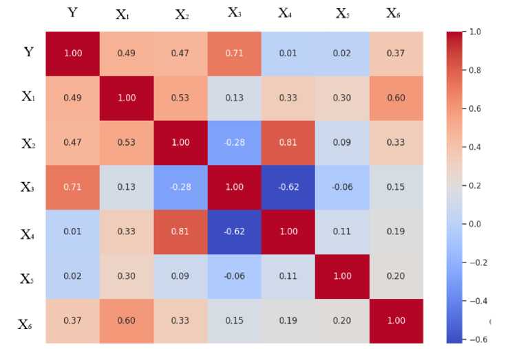 Согласно таблице Чеддока, корреляционная связь считается сильной при значении коэффициента более |0,7|. Можно говорить о сильной нелинейной корреляционной зависимости между индексом равновесных цен на продажу электроэнергии (X1) и минимальным индексом равновесной цены (X6), но линейная зависимость между этими факторами находится в допустимой норме, поэтому целесообразно построение многофакторной модели, учитывающей все доминантные факторы (X1, X2, X3, X6).