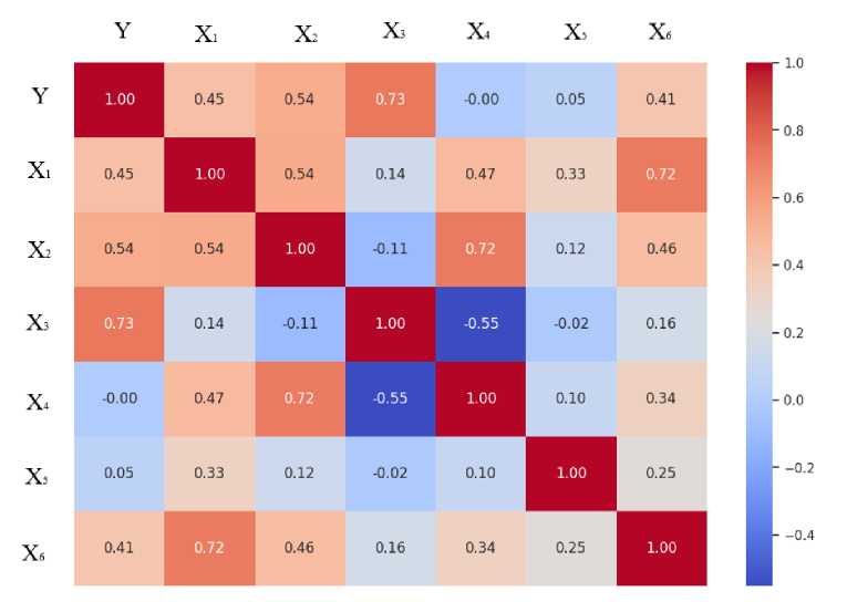 Рис. 1. Тепловая карта корреляционной матрицы критерия Пирсона