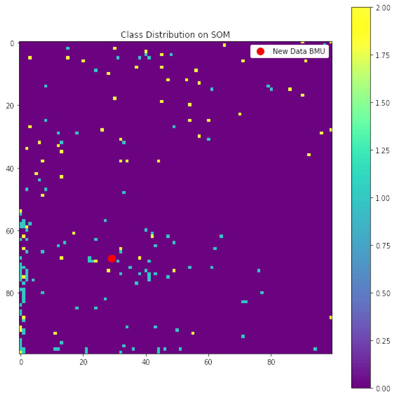 Fig. 2. Visualization of SOM and BMU winner neuron