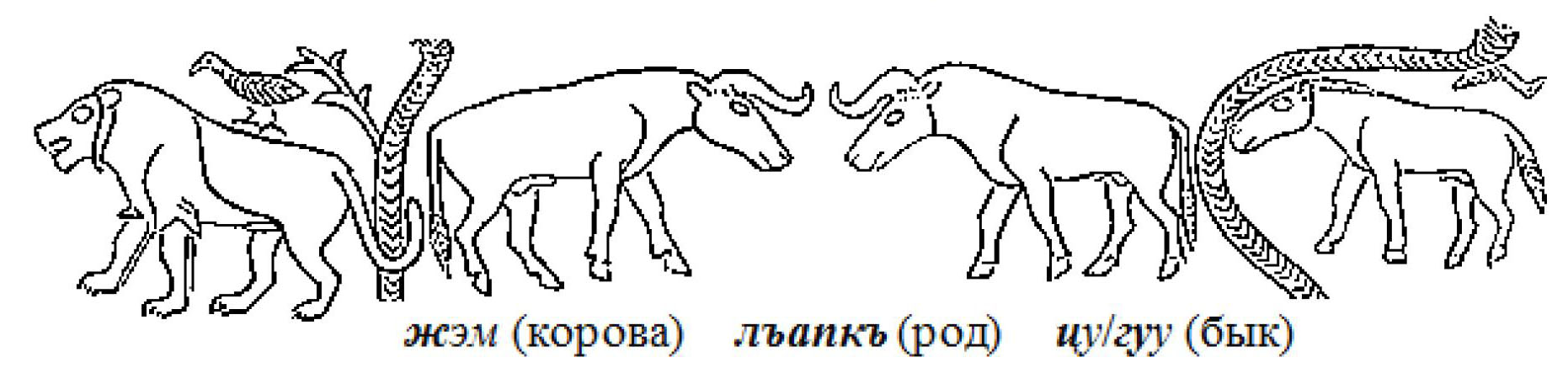 Fig. 6. Ideographic image of cattle in the meanings – "genus", "tribe", "people", "breed", etc.