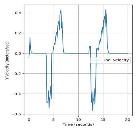 Fig. 6. Chang in the movement speed of the tool along the Oy axis