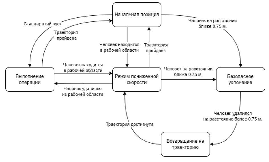 Рис. 7. Конечный автомат робототехнической ячейки для контроля столкновений с человеком