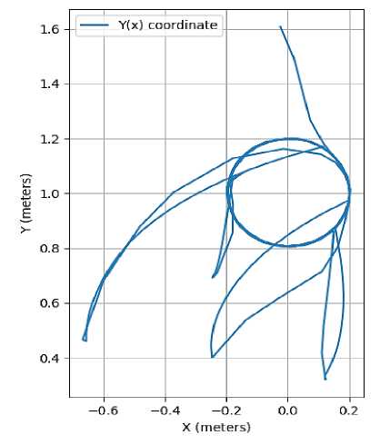 Рис. 9. Траектория движения инструмента робота в плоскости Оху