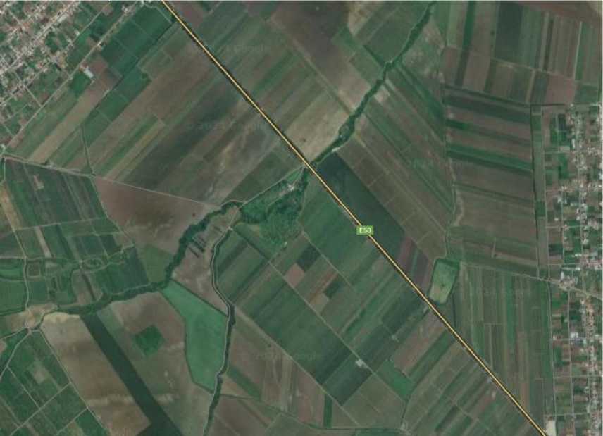 Рис. 1. Пример потенциального локального рынка с ограниченным спросом – системы сельскохозяйственных производителей (на карте видно распределение земельных участков) и автомагистрали