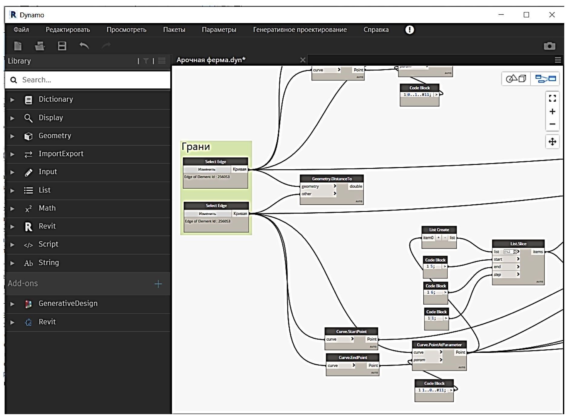 В соответствии с описанными выше этапами получаем скрипт, написанный в Dynamo: