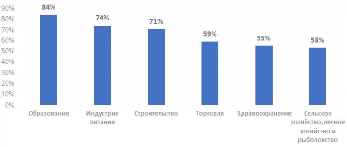 Исследователи ИИ, основываясь на статистике, прогнозируют, что к 2035 году прибыль в некоторых отраслях, использующих ИИ, увеличится на более чем 44 %5. Максимальный эффект от ИИ получат: образование, сфера питания, строительство, торговля и здравоохранение (рис. 1).