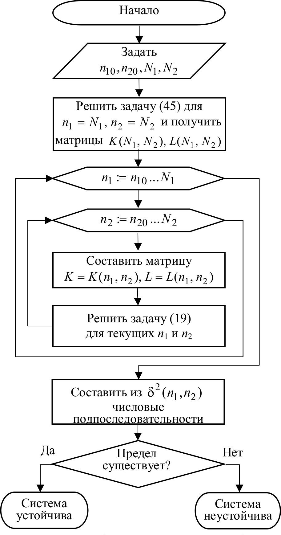 Утверждение 1. Критерий устойчивости системы (15). Пространственно-временное представление объекта (15) является устойчивым, если задача полуопределенного программирования (19) имеет решение и последовательности, составленные из при увеличении n1, n2, имеют конечный предел.
