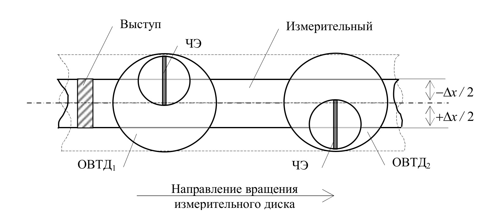 Рис. 1. Положение ЧЭ ОВТД1 и ОВТД2 относительно измерительного диска