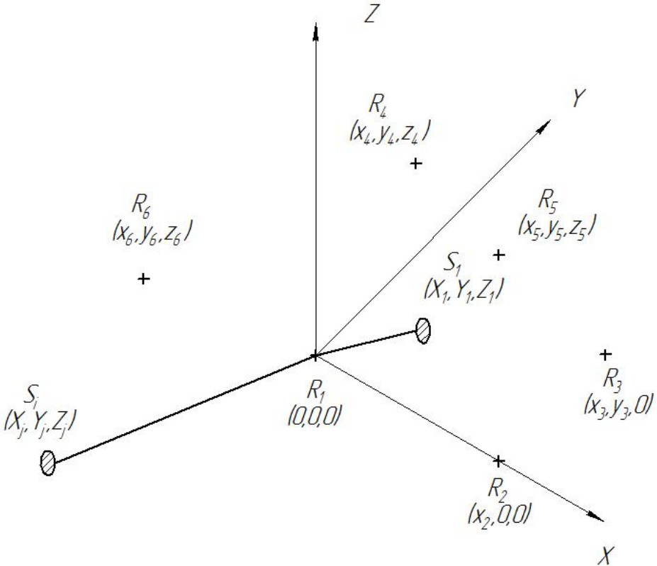 где xr1, yr1 и zr1 – координаты первой опорной точки, соответствующей началу системы координат.