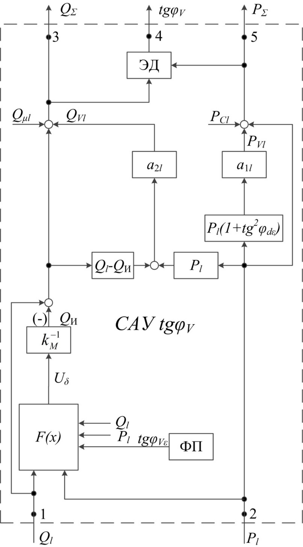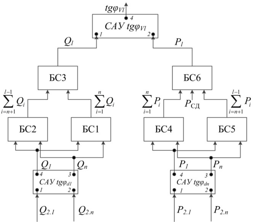 Рис. 6. Структурная схема САУ коэффициентом реактивной мощности tg φV всего предприятия
