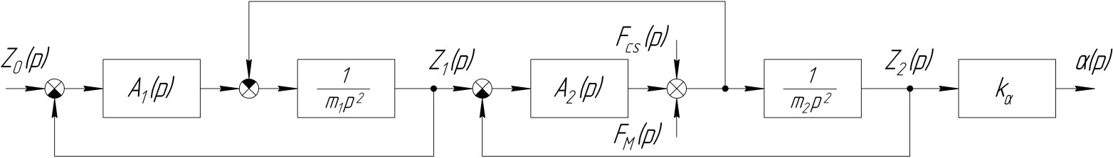 Приведенной системе операторных уравнений (8) – (9) соответствует структурная схема объекта управления, приведенная на рис. 3.