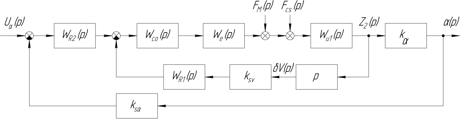 Структурная схема исполнительного элемента , показанного на рис. 4, с учетом соотношений (24) – (26) приобретает вид, представленный на рис. 5, где