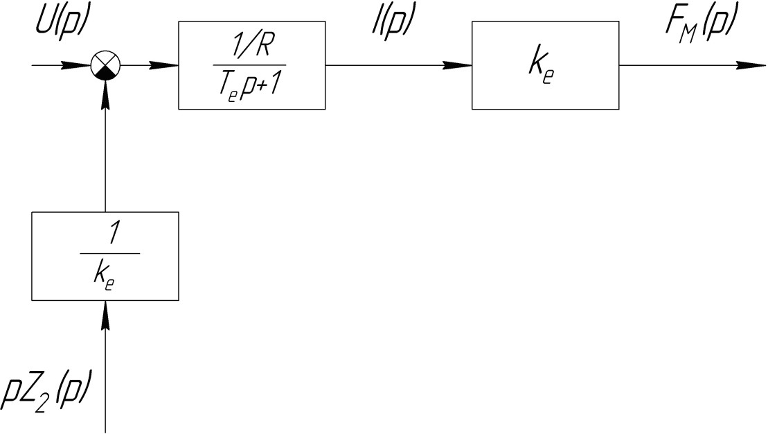 где – ток якоря; – наведенная в якоре ЭДС; – индуктивность цепи якоря; – сопротивление якорной цепи двигателя; – коэффициент передачи двигателя; – конструктивный коэффициент; – электромагнитная постоянная ЛДТП.