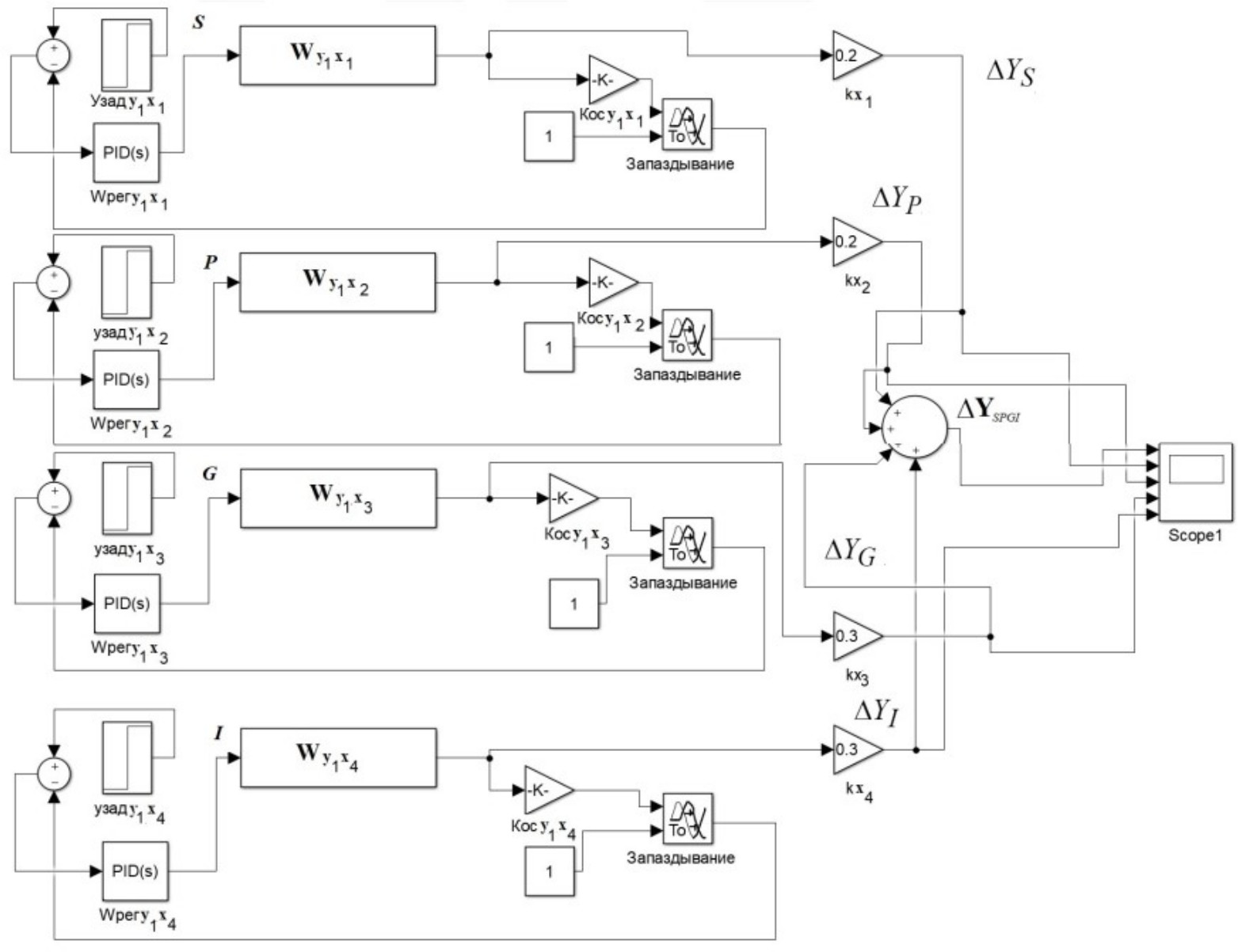 Рис. 9. Моделирование суммарного автоматизированного управления Y1