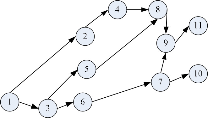 Любой набор процессов использует конечное количество системных ресурсов. Для каждого элемента множества системных ресурсов имеется ряд факторов, определяющих очередность исполнения того или иного процесса. Зададим алгоритм запуска приоритетных процессов на 11 позиций с помощью графа (рис. 2).