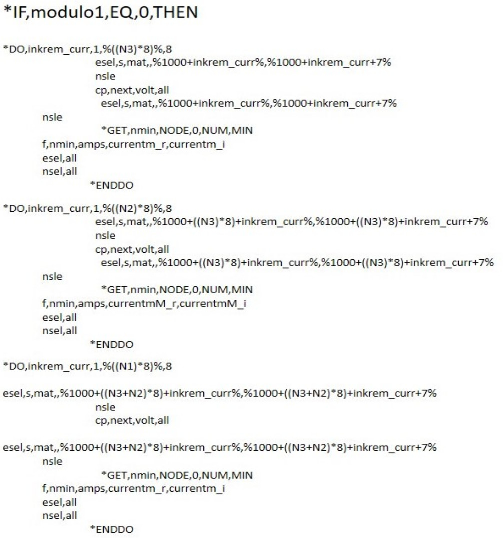 Как было сказано ранее, принцип работы ПП ANSYS Mechanical APDL основан на встроенном алгоритмическом языке, близком к FORTRAN, поэтому все введенные ранее параметры были записаны в соответствующие файлы (геометрическая модель, тепловые свойства, электромагнитные свойства, конечно-элементная сетка и т. д.). Данные файлы объединены главным файлом, который определяет сценарий расчета, т. е. содержит последовательность команд на открытие файлов и выполнение прописанных в этих файлах алгоритмов.