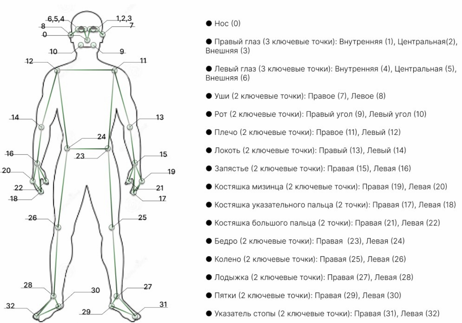 Детектирование позы человека является актуальной задачей, решение которой позволяет получать данные о положении частей тела. Полученные данные возможно использовать для анализа, включая оценку характера действий и качества движений, взаимодействия с объектами реального мира и дополненной реальности. Существует множество различных подходов для решения задачи детектирования позы, которые можно разделить на две основные группы: подходы, использующие маркеры, и безмаркерные подходы.