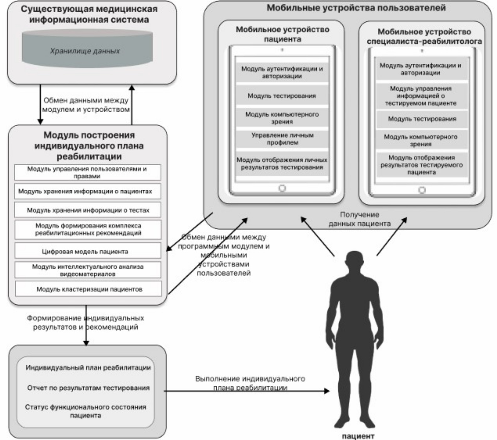 Снижая нагрузку на специалистов, анализируя и интерпретируя данные, такая система может обрабатывать большие объемы информации и выдавать подробные заключения, а также предлагает рекомендации по функциональной коррекции опорно-двигательного аппарата пациента. Применение методов компьютерного зрения для распознавания и анализа движений пациента и интеллектуальных технологий для построения индивидуальных планов реабилитации, а также оценки эффективности реабилитационных мер в комплексе обеспечивает научную новизну исследования и способно повысить эффективность и качество реабилитационного процесса.