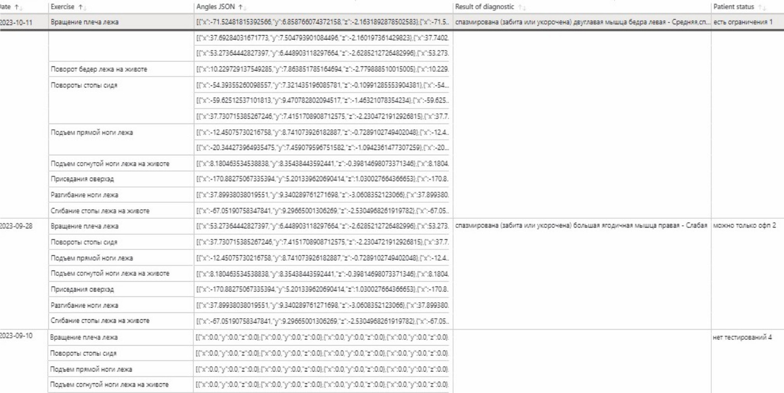 - составление и дальнейшая корректировка индивидуального плана, оценка корректности ранее выбранных реабилитационных упражнений, проводимая на основе фиксируемых данных;