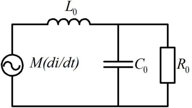 Для удобства измерения импульса тока при высоковольтных испытаниях катушка Роговского выполняется в виде зажимного устройства. Катушка наматывается на изолированный сердечник из немагнитного материала, чтобы избежать магнитного насыщения. Устройство должно быть пригодно для работы в широком диапазоне частот. Ограниченная частотная характеристика катушки, реагирующей на индуцированное напряжение, зависит от ее самоиндукции L0 и общей емкости шунта. Расчетная схема катушки Роговского с измерительным кабелем и шунтирующим резистором показана на рис. 1.