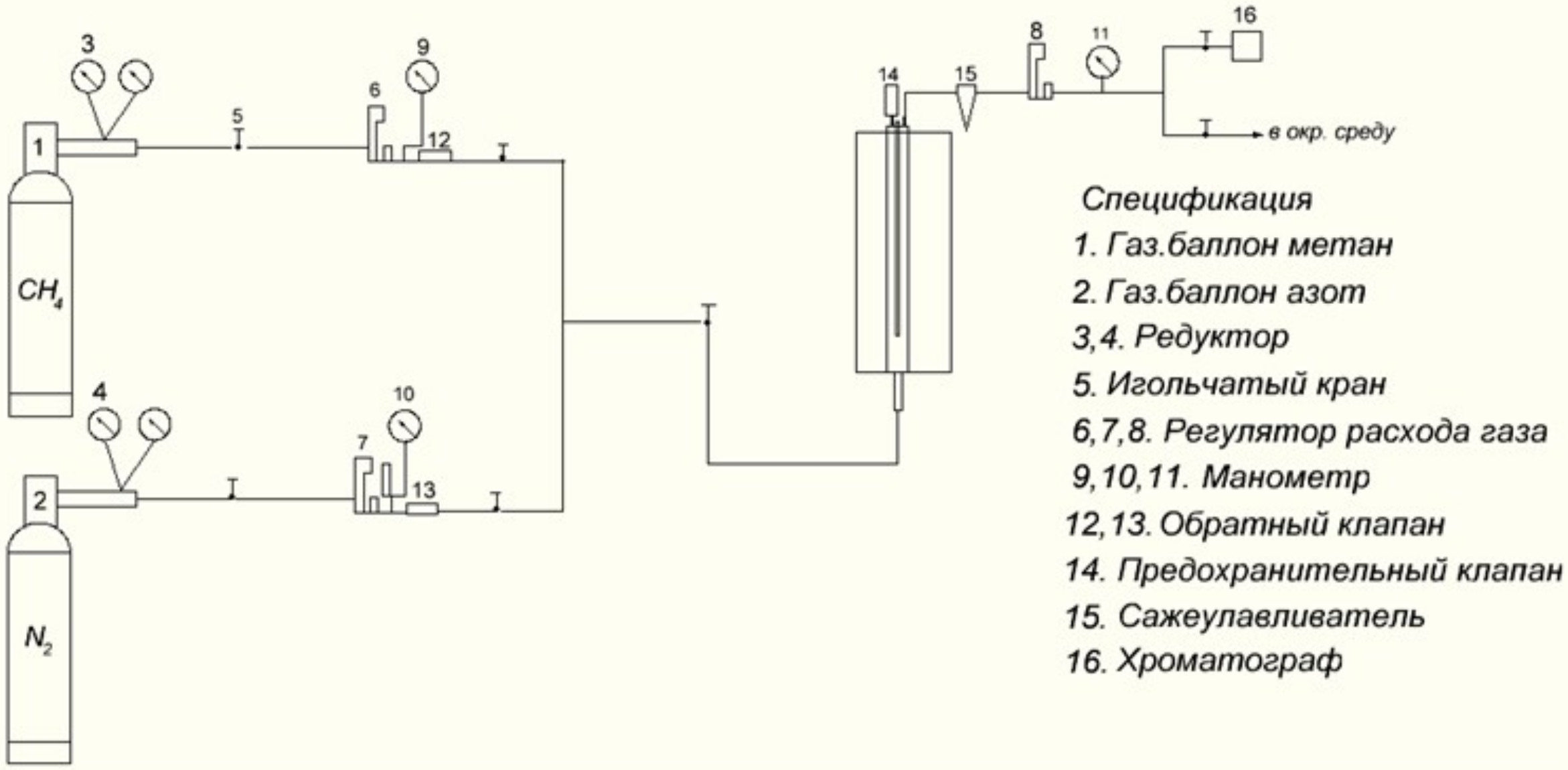 Рис. 1. Схема лабораторной установки каталитического пиролиза [17]