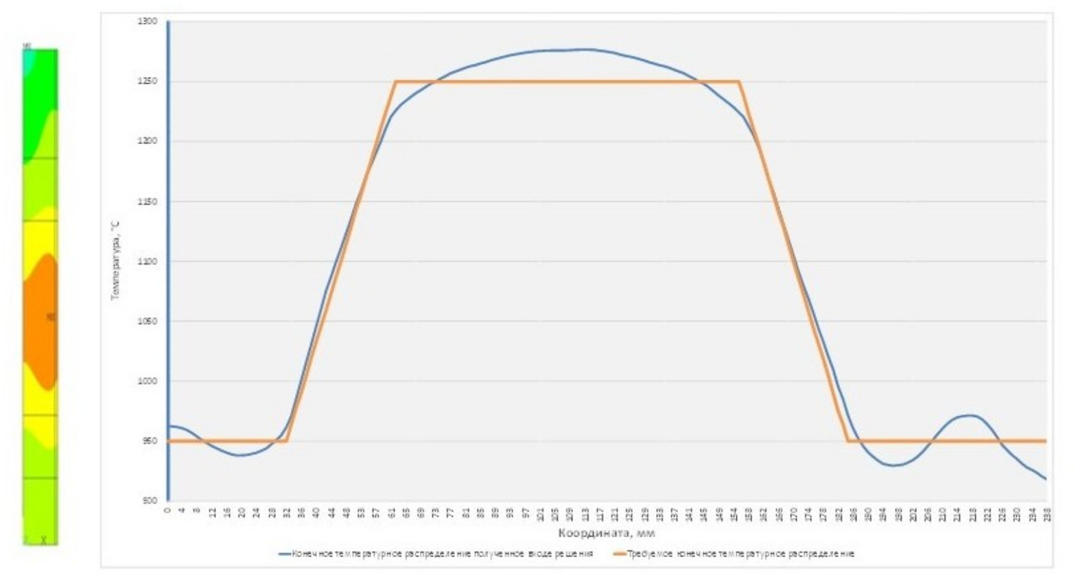Рис. 2. Требуемое конечное температурное распределение на поверхности стальной заготовки в конце процесса нагрева