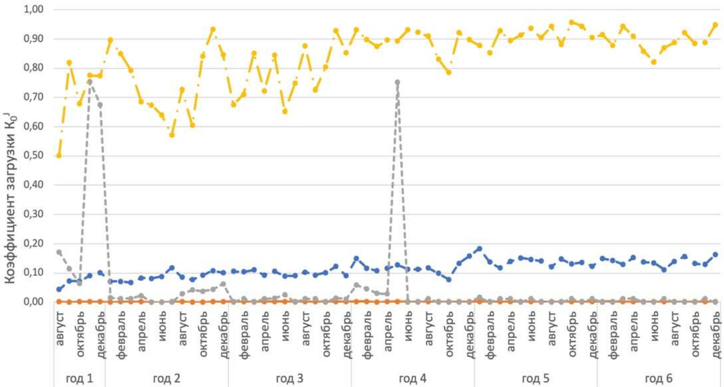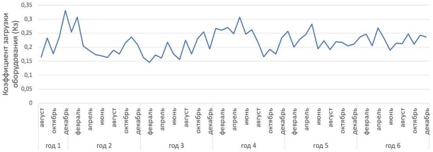 Рис. 1. Динамика суммарного коэффициента загрузки K3 ванн