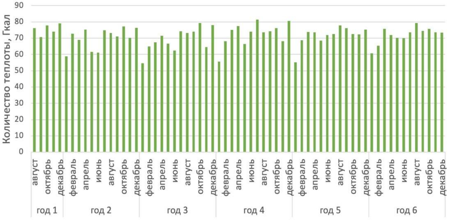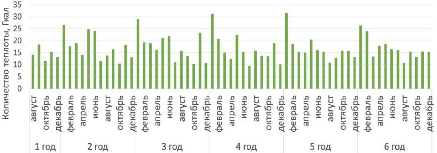 По результатам теплового баланса определена динамика требуемого для обеспечения технологии гальванических процессов количества теплоты (рис. 6).