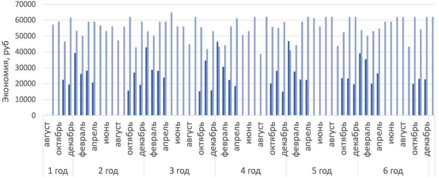 Рис. 10. Экономический эффект: ■ – система отопления; ■ – система ГВС