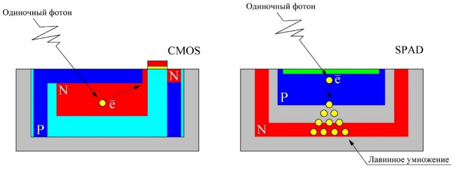 Рис. 3. Пояснение разницы в работе CMOS- и SPAD-датчиков