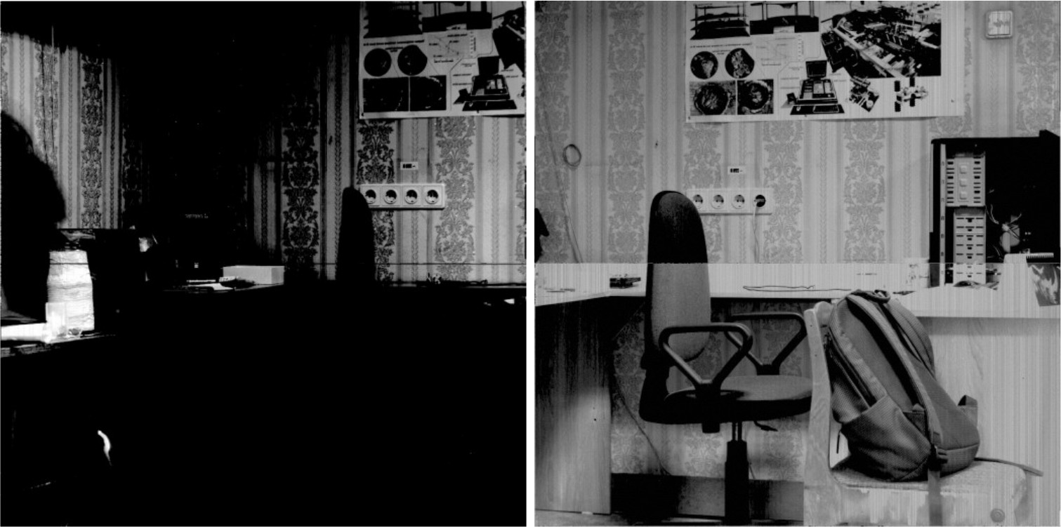 Снимки на рис. 10 получены следующим образом. Один снимок разбит на две половины, и для каждой половины заданы разные настройки времени экспозиции. По итогу лучший результат показан на рис. 10, в в верхней половине.