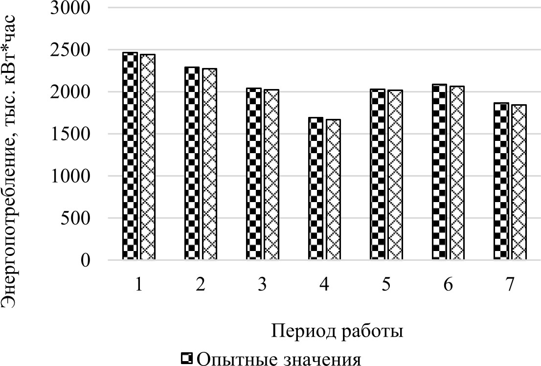 Verification of the theoretical assumptions was carried out by comparing the simulation results with actual electricity consumption data at the station. The comparison showed good agreement between the calculated and instrumentally recorded parameters.