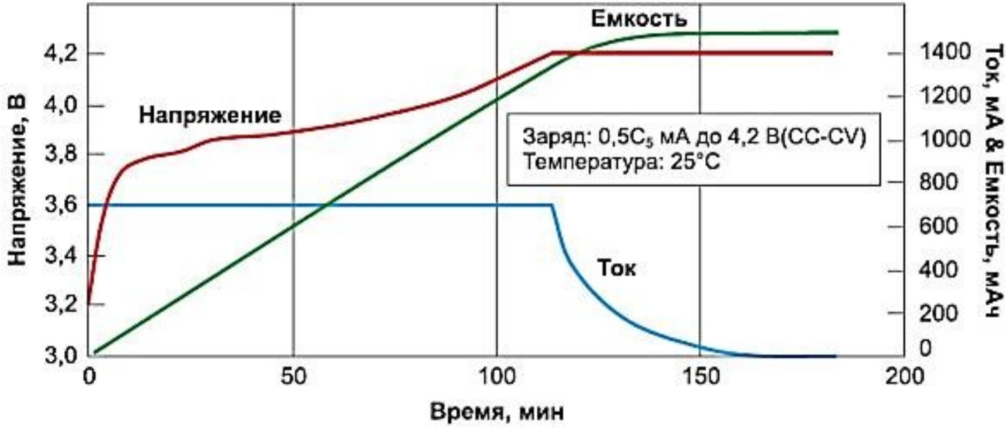 Рис. 3. Зарядные характеристики литиевых аккумуляторов компании EEMB
