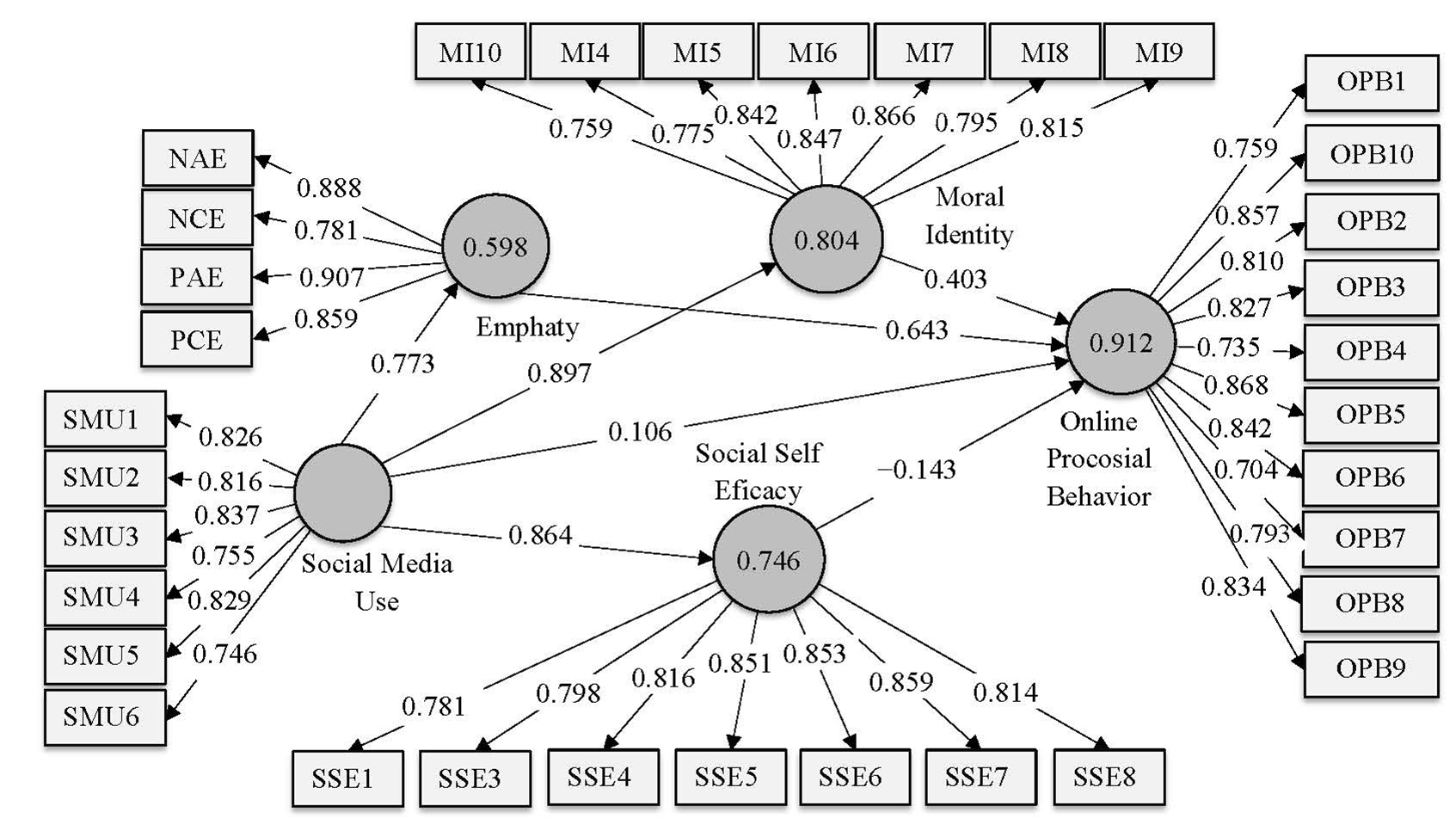 Social Media Use – Empathy | 0.773 | 0.772 | 0.032 | 24.209 | 0.000 |