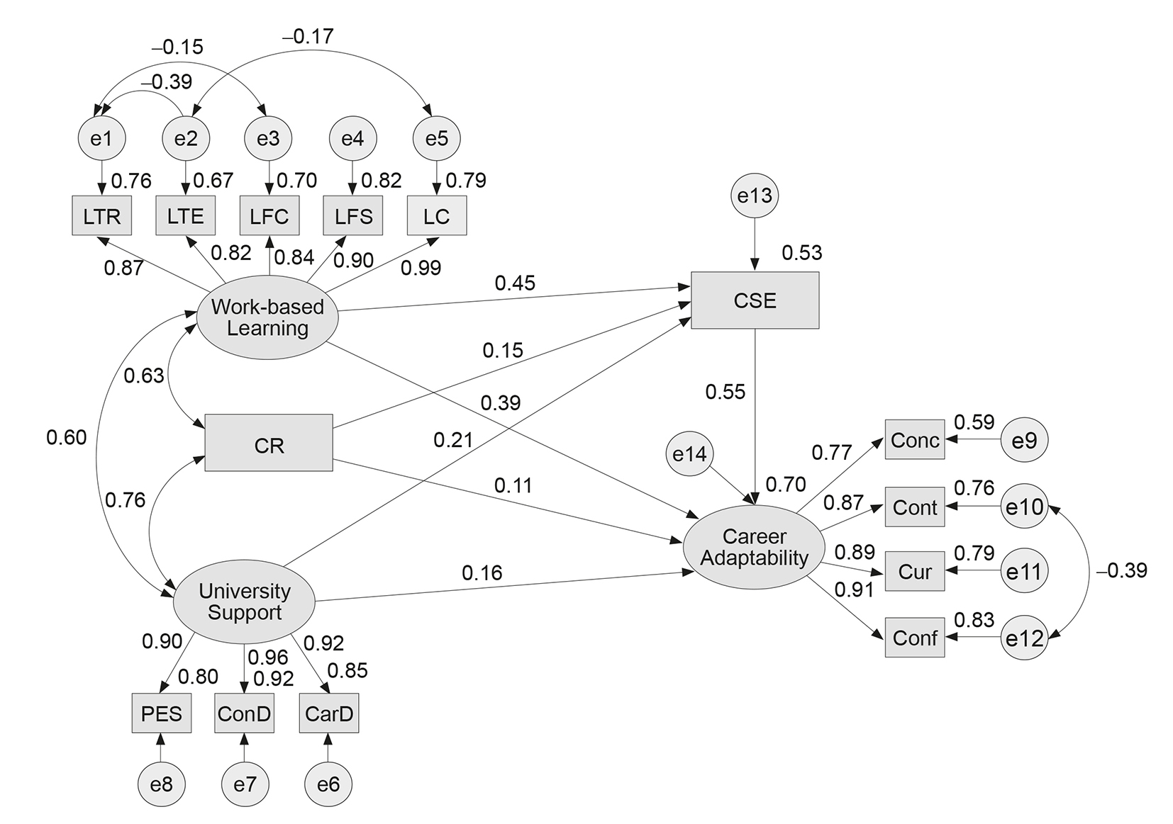 Hypothesis 5. University support has a significant and positive effect on vocational students’ career adaptability.