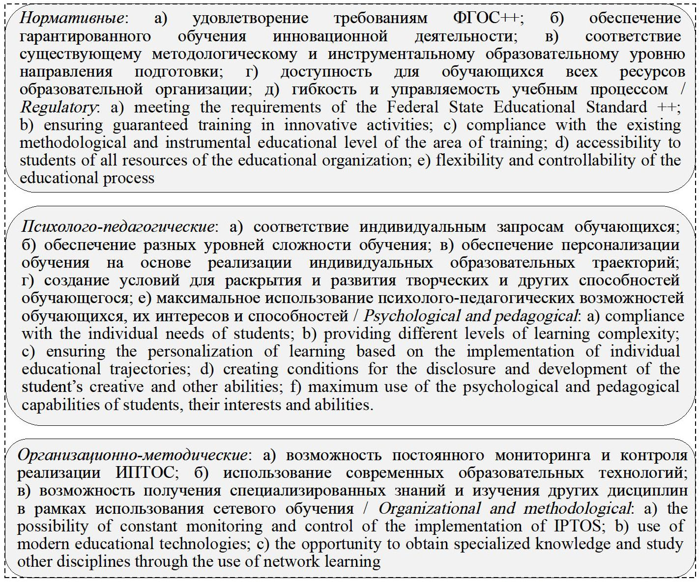 4 | Формулирование определения инновационной педагогико-технологической образовательной среды (ИПТОС) и требований, предъявляемых к ней / Formulating the definition of Innovative Pedagogical Technological Educational Environment (IPTE) and the requirements for it |