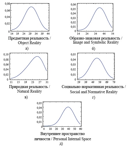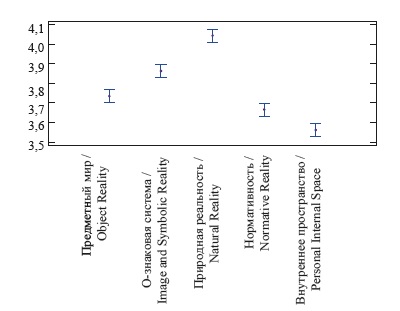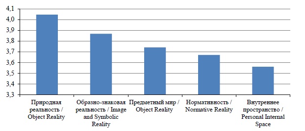 Fig. 5. Distribution of the subject world reality index (object reality, image and symbolic reality, natural