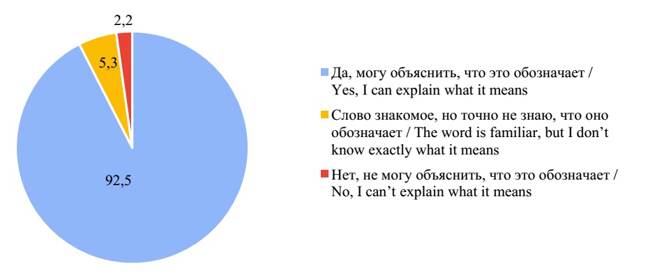 Отношение учителей и обучающихся к плагиату. Важно было установить, насколько участники ориентируются в теме и каково их отношение к такому явлению, как плагиат. Школьникам задан вопрос: «Ты знаешь, что такое плагиат? Сначала ответь, а потом “загугли”, если пока это слово тебе не знакомо, “двойку” не поставим». Большинство старшеклассников (92,5 %) уверены, что знают, что такое «плагиат» (рис. 1).