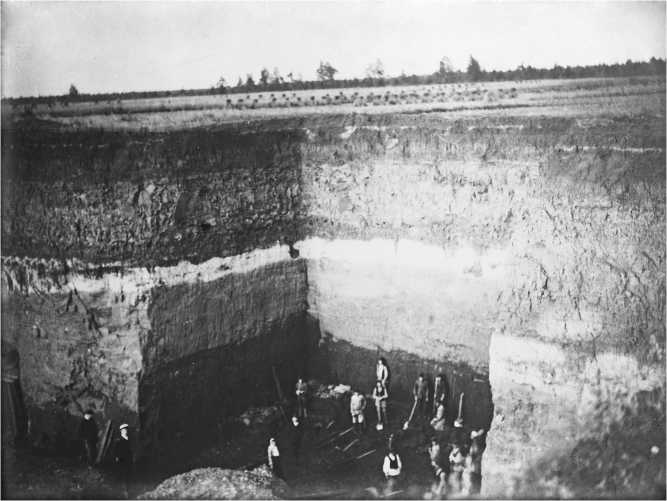 Фото 3. Соколки, фото окончания раскопок в августе 1899 г., глубина выемки 12 м (из фондов Пермского краеведческого музея, Госкаталог № ПОКМ-16611/153).