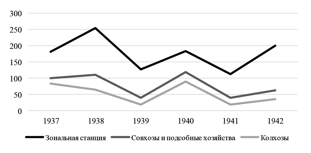В 1939 г. Станция приступила к подбору и испытанию раннеспелых сортов картофеля с учетом биологических особенностей, пригодных для выращивания в почвенно-климатических условиях округа, в связи с чем был создан первый коллекционный питомник [16].
