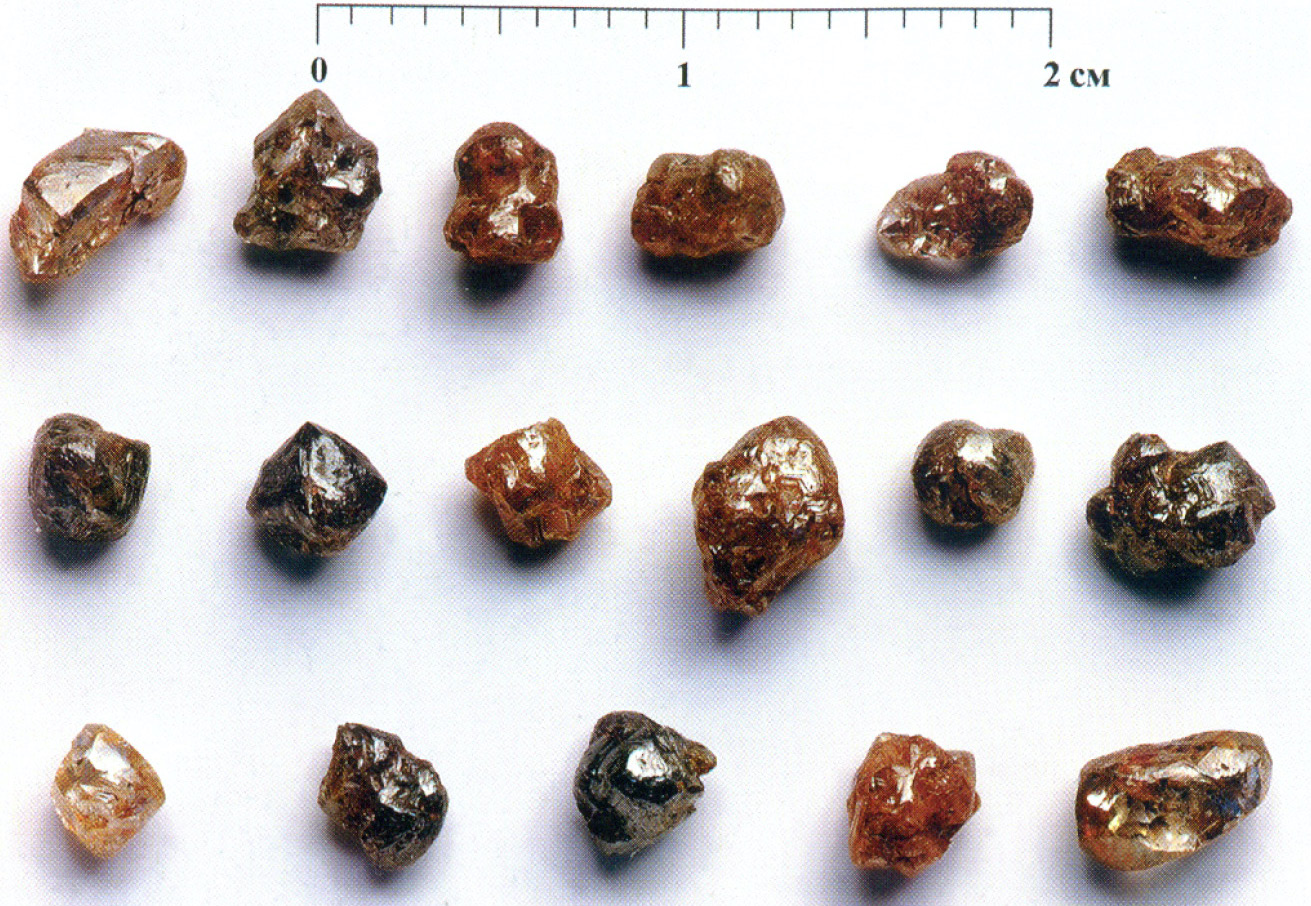 Рисунок 12. Алмазы из отложений россыпи Усунку-Юрэх (Приленский алмазоносный район)