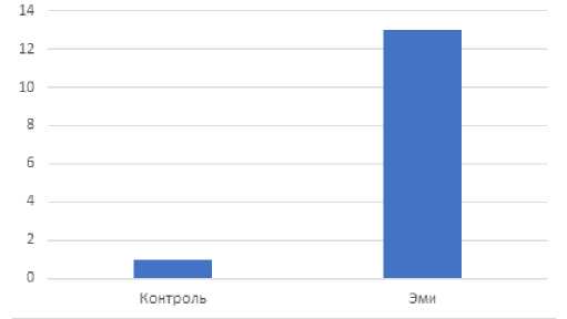 На рис. 2 видно, что количество растений в контроле на 17-й день стало меньше, а количество растений, обработанных ЭМИ, осталось прежним. Это указывает на снижение жизнеустойчивости растений в контроле.